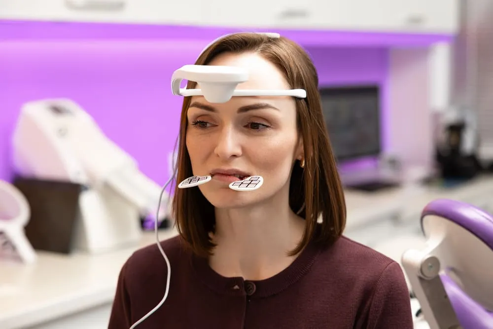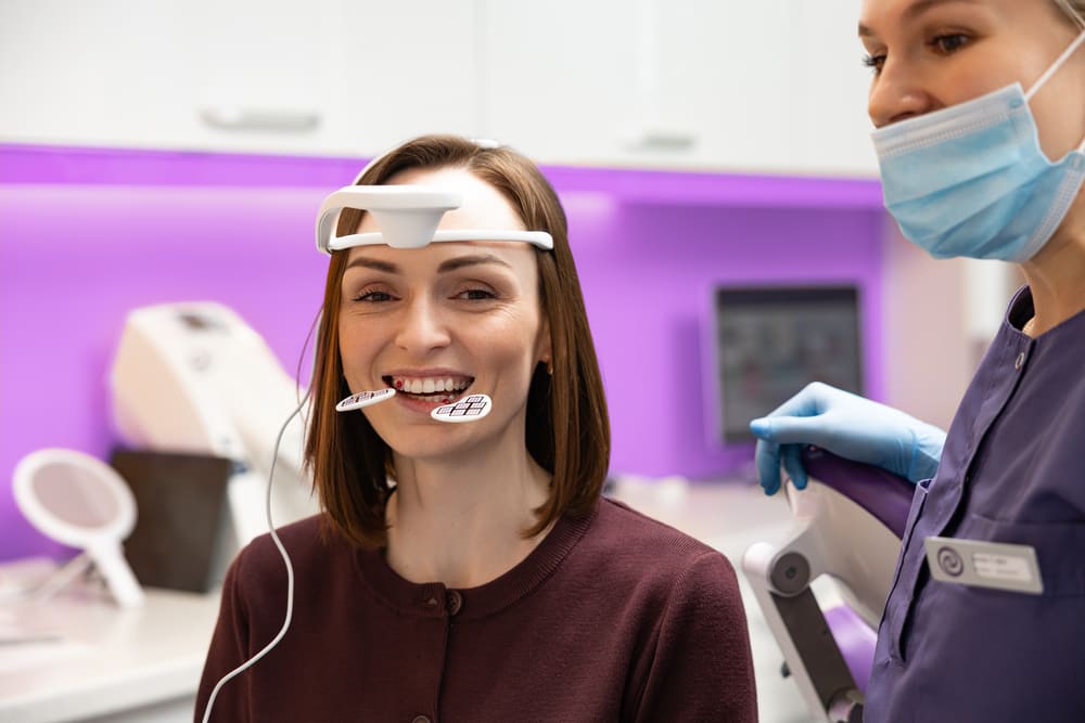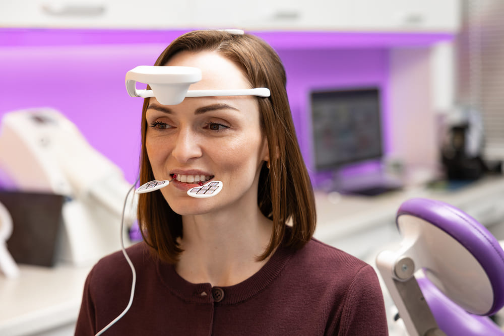 Пацієнт займає зручне положення у кріслі, а лікар прикріплює оптичні датчики до визначених ділянок щелепно-лицьової області.