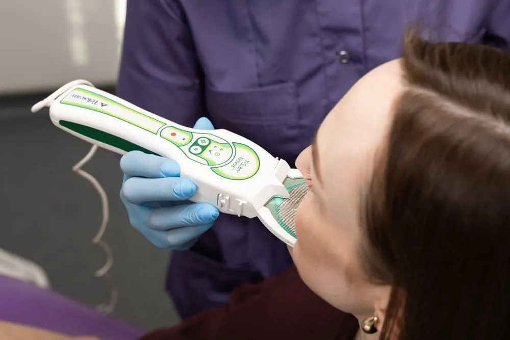 T-Scan — високоточна електронна система для аналізу міжзубних контактів. Замінює застарілі методи з артикуляційним папером й показує, як і з якою силою змикаються зуби під час жування та закривання щелеп.